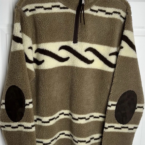 - Men > Sweaters > Todd Snyder Beige and Brown 1/4 Zip Sherpa Fleece Long Sleeve Sweater Zip Up