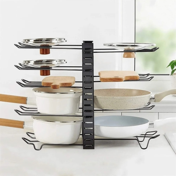 | Characteristics of goods | MULTIPURPOSE & VERSATILE: The perfect accessory for your kitchen - mount it vertically or horizontally depending on what best suits your kitchen!KEEP YOUR KITCHEN ORGANIZED: A tidy kitchen is a happy kitchen - that’s why with our pan organizer, you’ll be on your way to sheer bliss by keeping all your pots and pans neatly organized at all times!THE BEST STORAGE SOLUTION FOR COOKWARES - You no longer have to move all kinds of cookware to get the pan you need or stack your skillets atop one another, with this organizer rack, you can organize your pans, cast iron, griddles, and any other cookware. Pot Racks Pan Lid Holder Pot and Pan Rack Versatile Kitchen Organizer Suitable for All Homes Keep A Tidy Kitchen This Dynamic Saucepan Storage Unit Pot Lid Organizer RackColor: BlackSize: OneFeatures & detailsThis expandable kitchen storage rack will help you maximize storage space with easy access and keep your pantry and countertop tidy and well-organized.Questions? Leave a comment below! Easily stores skillets, pans, pots, griddles, dishes, trays, and more!It’s a perfect solution for storing all the pots and pans, saving you lots of space in the kitchen or cabinets and countertops, creating a clean and tidy kitchen for you. | ||