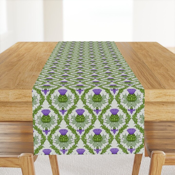 Etsy Floral Table Runner - Damask Moroccan Green Victorian Inspired Cotton Sateen Scottish Thistle By Chantal Pare Runners